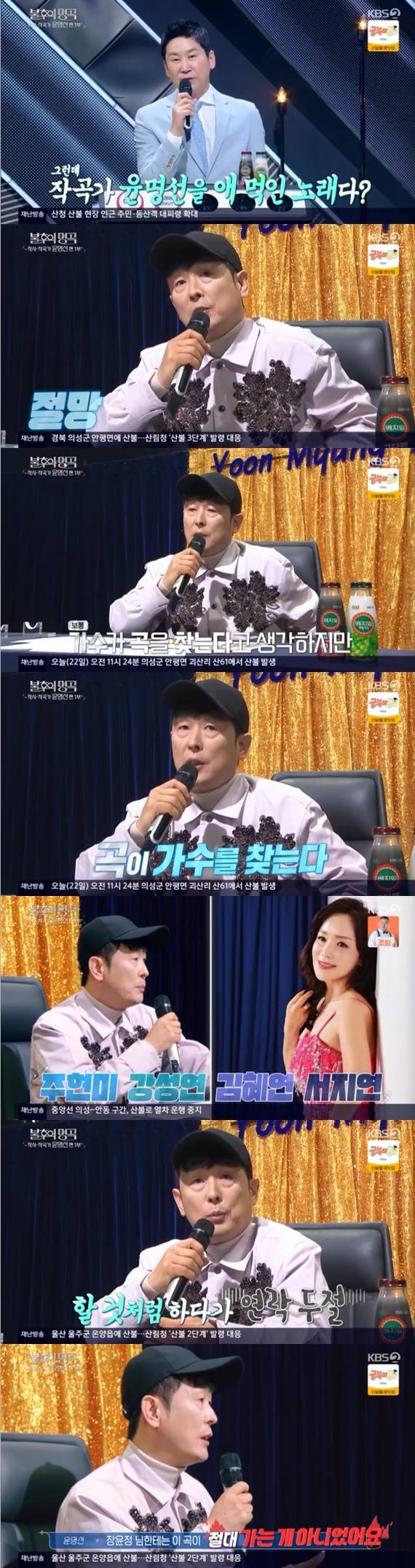 22일 방송한 KBS 2TV 예능 프로그램 '불후의 명곡'은 장윤정 '어머나', 이승철 '서쪽 하늘', 이루 '까만 안경', 슈퍼주니어T '로꾸거' 등 많은 히트곡을 만든 작사-작곡가 윤명선 편으로 꾸며졌다.