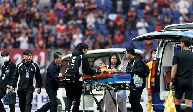 후반 추가시간 공중볼 경합을 하다 포항 어정원과 충돌한 뒤 중심을 잃은 채 그라운드로 떨어졌습니다.