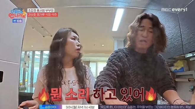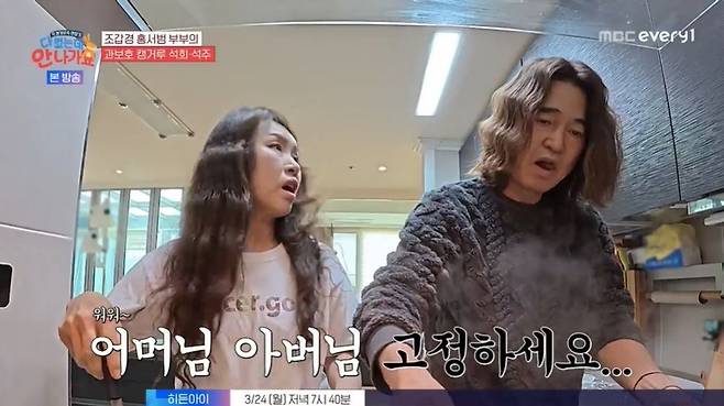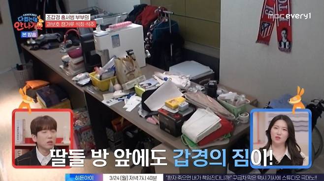 소파 뒤는 물론 딸들 방 앞에도 조갑경의 짐이 가득했다. 조갑경, 홍서범은 계속 언성을 높였지만, 두 사람은 "저희 대화다. 싸우는 것 같아서 많이 불편했냐. 오해하지 말라"고 말하기도. 조갑경은 딸을 깨우며 신발 얘기를 일렀지만, 홍석희는 "내가 보기엔 엄마 신발이 맞아"라고 아빠 편을 들었다.