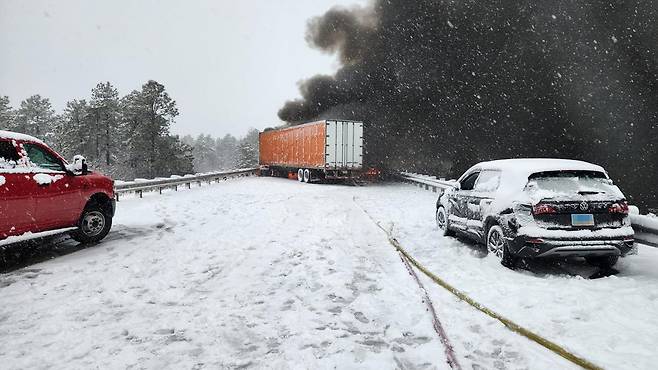 당시 인근에선 겨울 폭풍으로 22중 연쇄 추돌사고가 발생해 2명이 숨지고 16명이 부상을 입었습니다.