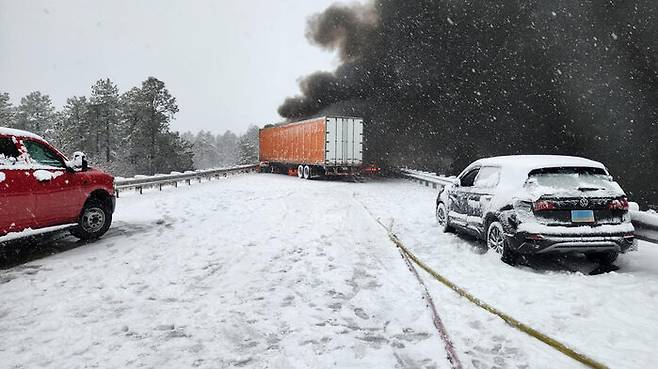 당시 이 고속도로에서는 눈을 동반한 겨울 폭풍으로 2명이 사망하고 16명이 다치는 22중 연쇄 추돌사고가 발생한 것으로 나타났습니다.