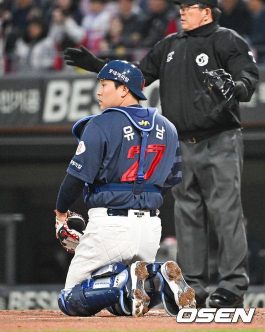 롯데는 4회 초 공격에서 1사 후 빅터 레이예스의 2루타, 윤동희와 전준우의 볼넷으로 만루 찬스를 잡았다. 시범경기 타율 0.091로 부진했던 손호영이 2타점 적시타로 LG 선발 요니 치리노스의 무실점 행진을 깨뜨렸고, 유강남이 안타로 다시 1사 만루 찬스를 이어갔다. 그러나 절호의 찬스에서 박승욱이 3구 만에 삼진, 황성빈이 1구 만에 포수 파울 뜬공으로 허무하게 물러나 격차는 좁혀지지 않았다.