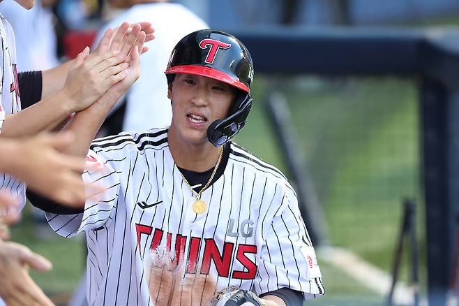 이날 LG도 그동안 꽃 피지 못했던 송찬의의 활약에 반색했다. 6번·지명타자로 나선 그는 이날 롯데전에서 개인 한 경기 최다인 안타 3개를 쳤다. 3회는 무사 1·2루에서 희생번트 작전을 수행했다. 4회는 주자를 2루에 두고 좌전 안타를 치며 타점을 올렸다. 6회 2사 주자 없는 상황, 8회 무사 주자 없는 상화에서도 안타로 출루해 기회를 열었다.