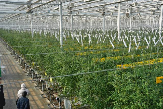 이틀 전 때아닌 3월 폭설이 내리고 기온이 영하까지 내려갔지만 3만 3000㎡(1만 평) 규모의 유리온실 B동 내부는 영상 25도로 따뜻했다. 이후 기온이 갑작스럽게 영상 10도를 웃돌며 변덕스러운 날씨가 이어졌지만, 유리온실 속 토마토에는 아무런 영향을 미치지 않았다.