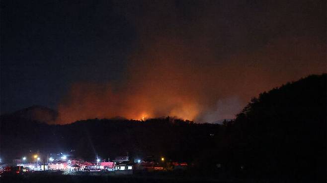 어제 오후 7시 70%의 진화율을 보였지만 밤사이 불길이 번지면서 진화율이 다소 떨어졌습니다.