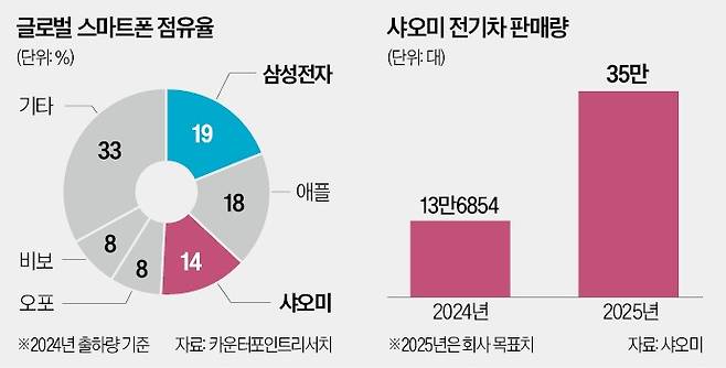 여기에 샤오미가 전기차 사업에 진출하면서 삼성의 잠재적 VIP 고객으로 떠올랐다. 샤오미는 지난해 첫 전기차인 SU7을 출시해 중국에서 돌풍을 일으켰다. SU7 시리즈는 지난 한 해 13만6854대 인도됐다. 전기차를 포함한 혁신 사업 부문 매출은 328억위안(약 6조6000억원)을 기록했다. 샤오미는 올해 전기차 인도 목표량을 기존 30만 대에서 35만 대로 늘려 잡았고 2027년부터 해외 자동차 시장에도 진출할 계획이다.