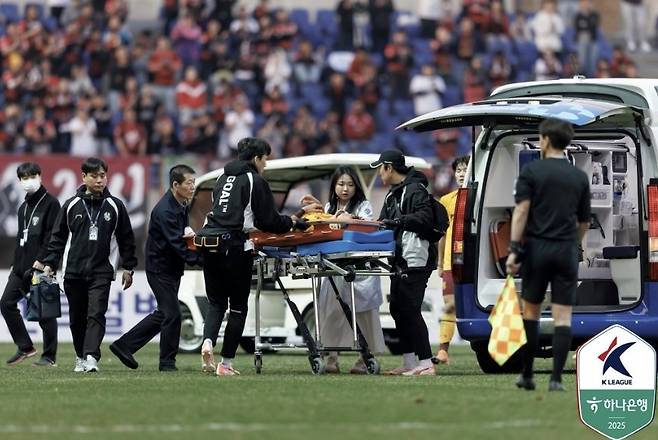 | ▲ 경기 도중 부상으로 응급실로 이송된 광주FC 조성권 |