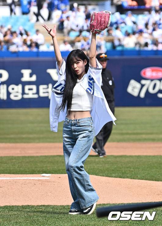 프로미스나인 이채영이 시구를 하고 있다. 2025.03.23 / foto0307@osen.co.kr