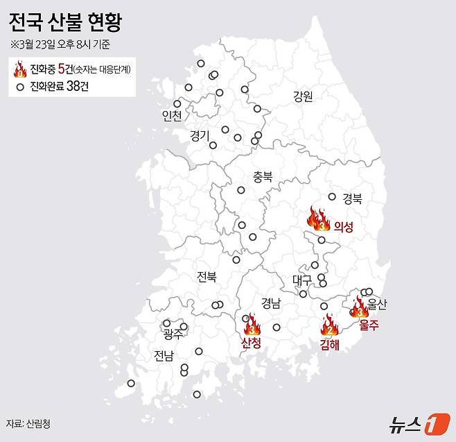 [그래픽] 전국 산불 현황(23일 오후 8시 기준)