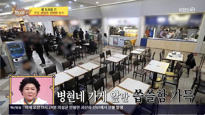 '잘 될 수 있는 아이디어'에 박명수는 "가격을 낮춘다고 될 일이 아니다. 차별화가 필요하다. 뭔가 다른 게 있어야 한다"며 푸드코트 위치도 맨 안쪽인 것을 지적했다. 카페 포함 11번째 가게였다. 심지어 가게 옆은 공실. 목은 초입이나 중간이 좋다는 조언도 건넸다.