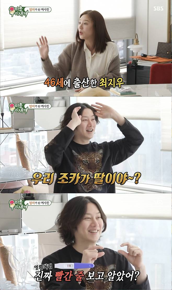 손담비는 "너무 서글픈게 뭔지 아냐. 내가 노산이지 않냐. 43살이다. 최지우 선배님의 노산의 아이콘이셨다. 46살에 출산하셨는데 난 기적같은 일이었다. 난 내 나이에 임신이라니 너무 행운이다"라 했다. 김희철 역시 "늦은 나이에 너도 완전 축복이다"라고 축하했다.
