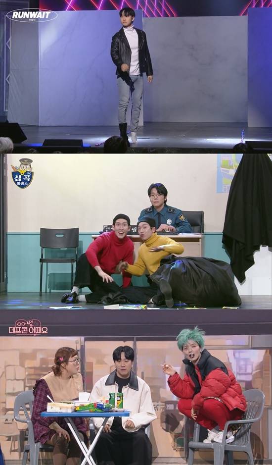 송병철, 방주호, 장준희, 송재인, 임성욱, 심문규가 출연하는 '런웨잇'은 패션쇼에 모델이 부족해 생기는 일을 다룬 코너로, 시간이 부족해 옷을 제대로 갈아입지 못한 모델들의 세상 진지한 워킹이 웃음을 자아냈다.