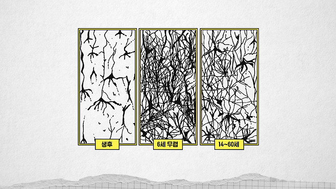 뇌라는 거는 시기별로 받아야 될 필수 자극이 있어요. 유아기 때는 정서적 자극과 사회성적인 자극이 들어와야 그때 형성되어야 될 뇌 회로, 신경회로가 늘어나고, 또 불필요한 신경 회로는 가지치기를 해줘야 뇌가 성숙해지거든요. 불필요한 시냅스가 계속 우리 머릿속에 남아 있잖아요? 그렇게 뇌 속에 남아 있으면 굉장히 합선도 막 일어나고 불필요한 회로가 자꾸 필요한 회로의 기능을 방해해 버려요. 그래서 오히려 그 시냅스가 제거가 잘 안 된 뇌는 미성숙한 뇌가 되는 겁니다. 근데 그게 바로 '뇌 가소성'이라는 거예요.