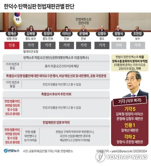 [그래픽] 한덕수 탄핵심판 헌법재판관별 판단