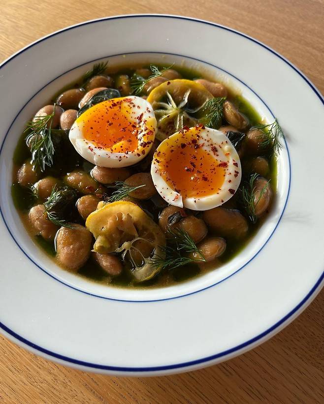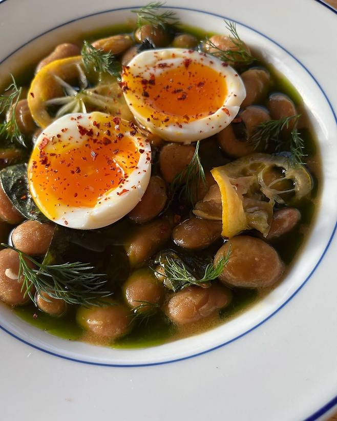 된장용 콩(Miso Beans)과 촉촉한 반숙 계란이요.