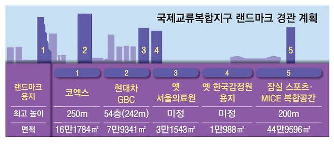 개발이 완료되면 코엑스와 GBC 용지, 서울의료원 용지와 잠실운동장 내에 각각 랜드마크 건물들이 들어서며 이 일대 스카이라인이 대폭 변화할 것으로 예상된다.