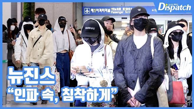 '뉴진스(NewJeans)'가 공항에 모인 팬들과 인사하며 입국길로 들어섰다.