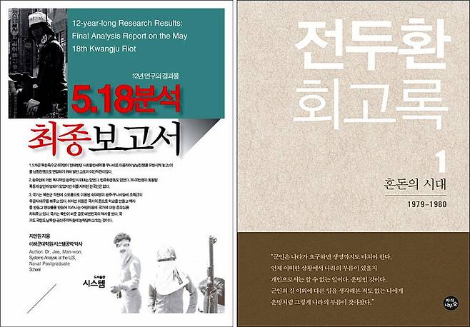 2014년 출간된 <5·18분석 최종보고서>(왼쪽 사진)의 저자는 지만원씨(83)다. 지씨는 지속해서 5·18민주화운동을 부정하고 왜곡하는 대표 인사로 “5·18에 북한군이 개입했다”는 주장을 반복하고 있다. 여러 차례 정부 공식 조사에서 “사실이 아니다”라고 확인된 내용이다.