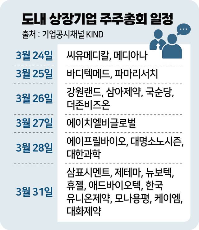국내 주요 제약·바이오 기업들의 정기 주주총회가 몰려 있는 '슈퍼 주총 위크'가 시작되는 가운데 강원도내 주요 상장사들도 이달말 잇따라 주주총회를 개최한다.