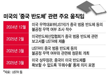 미국의 중국 범용 반도체 사업 견제는 전임 조 바이든 행정부 때 이미 시작됐다. 지난해 12월 미국 무역대표부(USTR)는 무역법 301조에 근거해 중국 범용 반도체 등에 대한 불공정 무역 여부 조사에 착수했다.