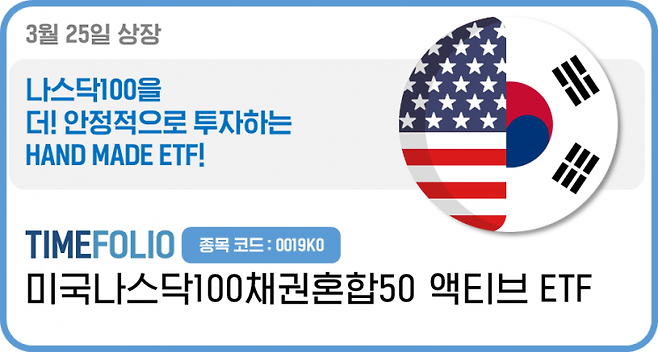 타임폴리오자산운용은 TMEFOLIO 미국나스닥100채권혼합50액티브 ETF를 신규 상장한다고 25일 밝혔다.