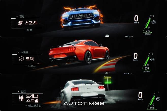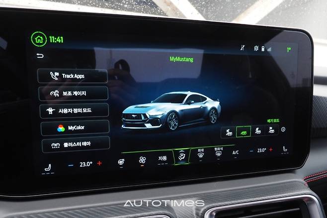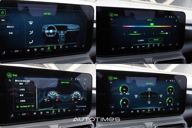 3세대 머스탱 계기판의 아날로그 감성을 느낄 수는 폭스바디(Fox Body) 테마는 훌륭하다. 옛 추억과 향수를 불러 일으키며 낭만을 더한다. 이 외에도 화면 아래쪽에 고정형 센터스택 디스플레이에서는 간단한 터치만으로 미디어 및 공조 시스템 등을 모두 조절 가능케함으로써 사용 편의성을 높였다.
