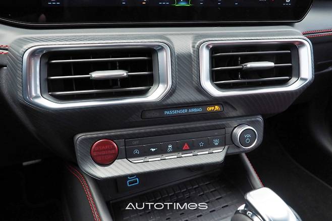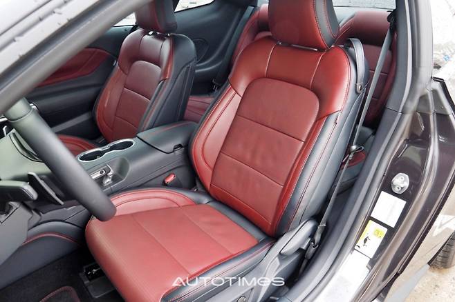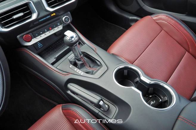 최신 기능과 반대로 센터페시아 형상은 운전자 중심으로 기존 감각을 최대한 활용했다. 머스탱은 여전히 달리는 데에 집중하는 차라는 것을 알 수 있는 대목이다. 이는 다양한 부분에서도 심심치 않게 찾아볼 수 있는데 길쭉한 변속 레버, 핸드 브레이크를 형상화한 전자식 사이드브레이크, 큼직한 송풍구, 각종 물리 버튼이 증명한다. 다양한 무드등과 뱅앤올룹슨 사운드 시스템, 가죽과 스티치 등 감성 품질을 높이는 요소도 제법 좋다. 마감 수준도 기대 이상이다.