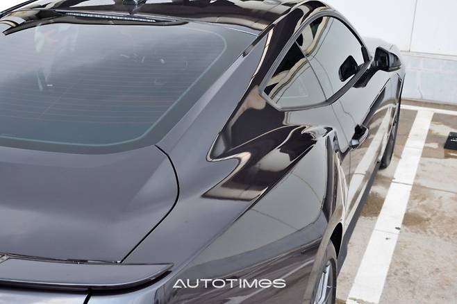 뒤는 트렁크 안쪽으로 꺾어지며 한층 각을 살렸는데 샤프해 보이고 굵직한 사각 테일램프와 순차적으로 점등 되는 빨간 방향지시등, 두툼한 리어 스포일러까지 전부 다 마음에 든다. 여기에 매우 굵은 쿼드 배기시스템까지 흠 잡을 곳이 없다.