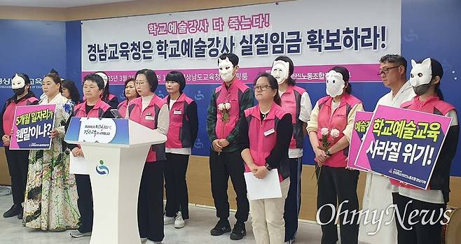 학교예술강사들이 조합원으로 가입해 있는 전국학교비정규직노동조합 경남지부(지부장 박쌍순)가 25일 경남도교육청에서 이같이 밝혔다.