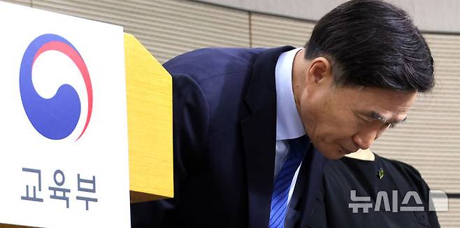 [세종=뉴시스] 강종민 기자 = 오승걸 한국교육과정평가원장이 25일 세종시 정부세종청사에서 2026학년도 대학수학능력시험 시행 기본계획 발표에 앞서 인사하고 있다.