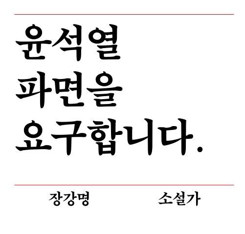 노벨문학상을 수상한 소설가 한강 등 국내 문학계 종사자 414명이 25일 ‘피소추인 윤석열의 파면을 촉구하는 작가 한 줄 성명’을 통해 헌법재판소의 윤석열 대통령 탄핵 인용을 촉구했다. 국내 유명 소설가와 시인들이 대거 참여했다.