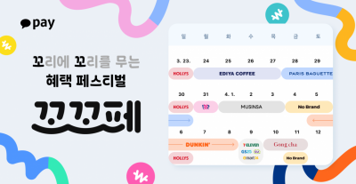 카카오페이는 꼬리에 꼬리를 무는 혜택 페스티벌 '꼬·꼬·페'를 시작했다고 25일 밝혔다. 매달 말부터 다음 달 중순까지 20여일간 진행하는 행사로, 날짜별 참여 브랜드와 결제 혜택이 달라진다. 카페·베이커리·패션·편의점 등 일상서 쉽게 찾는 브랜드와 협업한다.