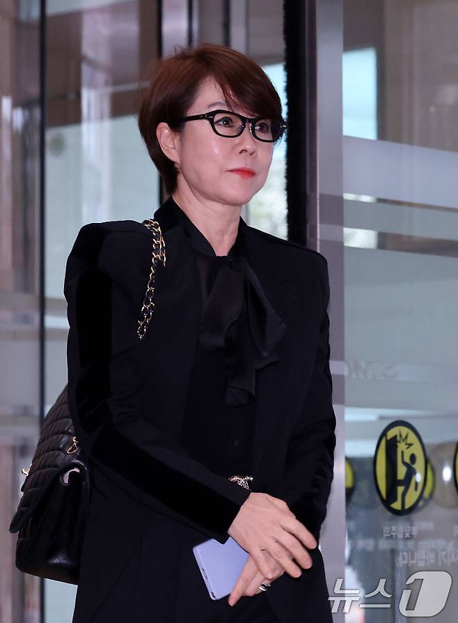 (서울=뉴스1) 박지혜 기자 = 이영희 삼성전자 사장이 25일 서울 강남구 삼성서울병원 장례식장에 마련된 한종희 삼성전자 대표이사 부회장의 빈소로 향하고 있다. 2025.3.25/뉴스1
