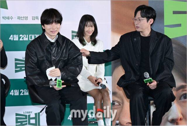 이날 입은 두꺼운 가죽 재킷에 땀을 뻘뻘 흘려 일어난 상황. 옆에 앉은 박병은은 이동휘의 가죽 재킷을 직접 만지며 상황을 이해했다.