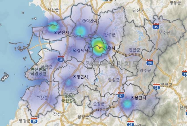 | ▲ 전북특별자치도 식료품점 밀집도(2022). |