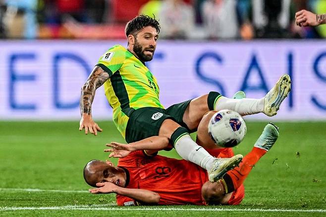 가랑이 볼 통과! 기름손 통과! 중국 축구, 7만 관중 앞에서 호주에 0-2 참패...C조 최하위