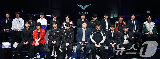사진 윗줄 왼쪽부터 시계방향으로 DRX 김상수 감독, '유칼' 손우현, DN 프릭스 정민성 감독, '불독' 이태영, KT 고동빈 감독, '비디디' 곽보성, BNK 피어엑스 유상욱 감독, '클리어' 송현민, 농심 레드포스 박승진 감독, '피셔' 이정태, OK저축은행 브리온 최우범 감독, '모건' 박루한, 디플러스 기아 '베릴' 조건희, 배성웅 감독, 젠지 '룰러' 박재혁, 김정수 감독, 한화생명 e스포츠 '피넛' 한왕호, 최인규 감독, T1 '오너' 문현준, 김정균 감독. 2025.3.26/뉴스1