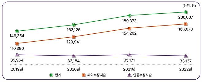 | ▲ 연도별 난임시술 건수 현황(2019년~2022년) |