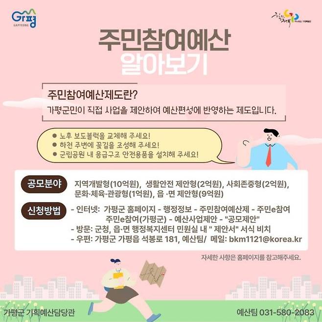 가평군은 5월 20일까지 내년 주민참여예산을 접수한다.