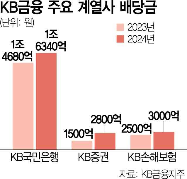 KB금융, 계열사서 2.4조 현금배당 받아