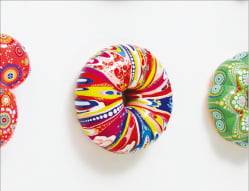 김재용 개인전 ‘런 도넛 런’이 4월 5일까지 서울 학고재 갤러리에서 열린다. 도자기를 구워 여러 색과 크리스털 등으로 장식한 ‘도넛 페인팅 시리즈’를 선보인다.