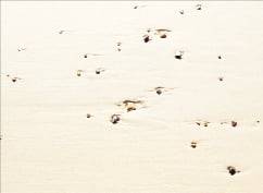 파도가 지난 자리에 생명이 아닌 것들이 생명력을 갖춘 듯 보여 마음을 빼앗긴 적이 있습니다. 그저 특색 없는 돌멩이 몇 개였을 뿐입니다. 물이 빠지고 난 후에 만들어낸 그 궤적이 마치 모래가 눈물이나 땀을 흘린 것처럼 보였습니다. 파도가 한겨울의 해변을 훑고 나자 시(詩)가 됐습니다. - 칼럼니스트 김현호의 ‘바벨의 도서관’