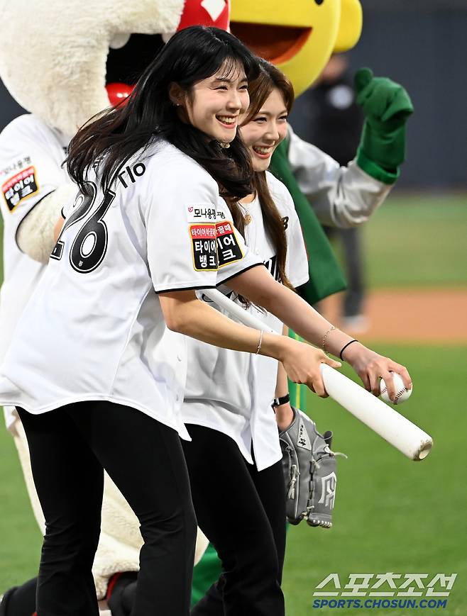 26일 수원KT위즈파크에서 열린 두산과 KT의 경기, 하얼빈 동계 아시안게임 컬링 금메달리스트 설예지 설예은 쌍둥이 자매가 시구와 시타를 맡았다. 밝은 미소로 그라운드를 나서는 설예은 설예지 자매. 수원=허상욱 기자wook@sportschosun.com/2025.03.26/