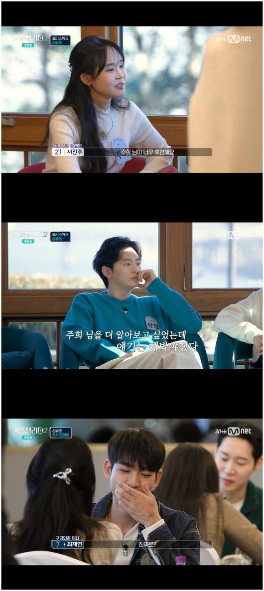 배주희는 “마음 고생 많이 했죠? 핼쓱해졌다. 저도 결정하니까 마음이 홀가분해졌다”라며 최재연에게 마음을 결정했다고 말했다. 김종국은 “최재연이 흔들리지 않고 꿋꿋하게 있었던 게 배주희 눈에 들어온 거 같다”라며 분석했다.