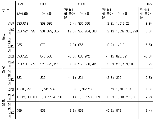 한방병원 치료비 증가율은 양방 치료비 증가율의 4배에 달했다.
