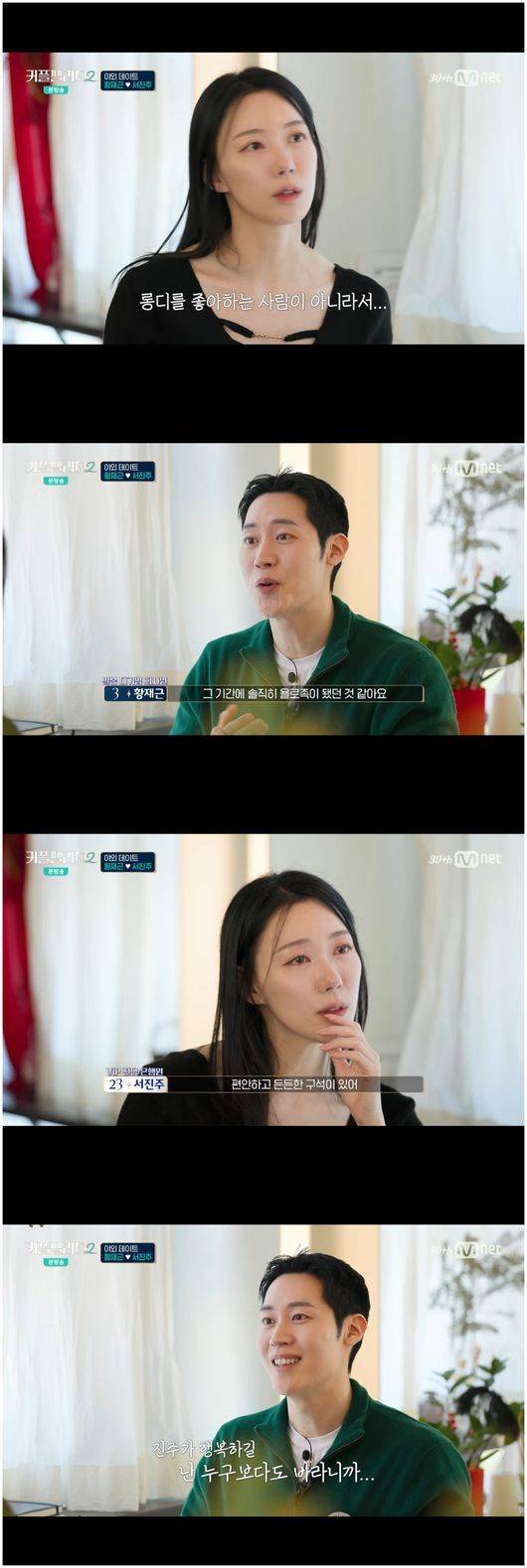 서진주는 “현실적으로 그런 생각도 했다. 프로그램이 끝나면 일본으로 가지 않냐. 고르는 선택에서 중요한 요인이었다. 난 내 일도 있고 커리어도 있다. 결혼 전에 모든 걸 그만 두고 갈 수 없다”라며 현실적으로 말했다.