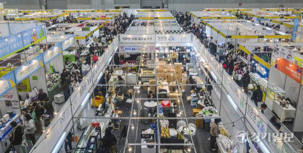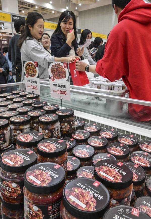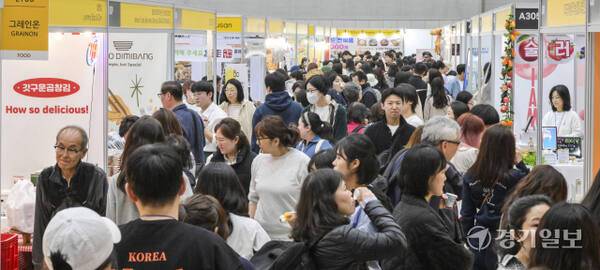 27일 오전 '2025 수원 메가쇼'가 열린 수원컨벤션센터를 찾은 시민들이 다양한 먹거리를 둘러보고 있다. 오는 30일까지 열리는 이번 행사에서는 전국에서 생산된 먹거리와 생필품을 만나볼 수 있다.