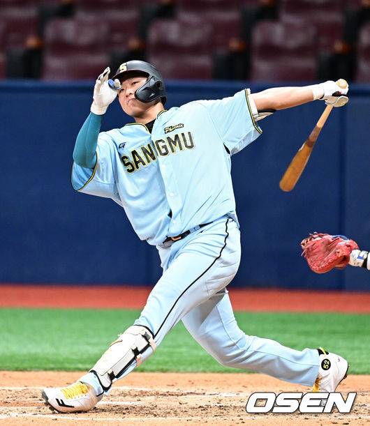 상무는 선발투수 조민석이 1회 박한결, 2회 송승환에게 홈런을 허용하며 0-2로 끌려갔다. 대포에는 대포로 응수했다. 4회 말 선두타자로 나선 이재원이 NC 선발 임상현의 무실점 행진을 깨는 좌중월 솔로포로 추격을 시작했다. 이어 한동희가 초구를 공략해 백투백 홈런으로 단숨에 2-2 동점을 만들었다.