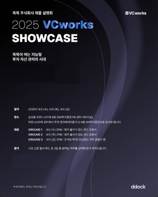 VC와 LP, 그리고 스타트업을 대상으로 하는 AI 기반 SaaS 솔루션 기업 ‘똑똑’이 4월 2일부터 4일까지 삼성동 파르나스타워에서 자사 제품 쇼케이스를 진행한다고 밝혔다.