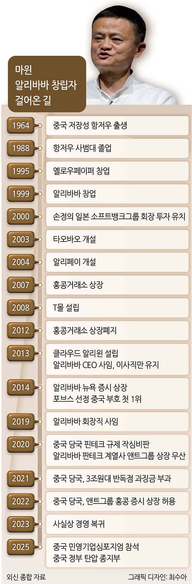 그러다 2025년 상황은 반전됐다. 중국 당국으로부터 미운털이 박혔던 마윈의 수난기도 시 주석과의 악수로 마침표를 찍었다.